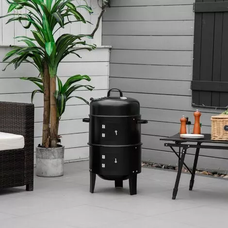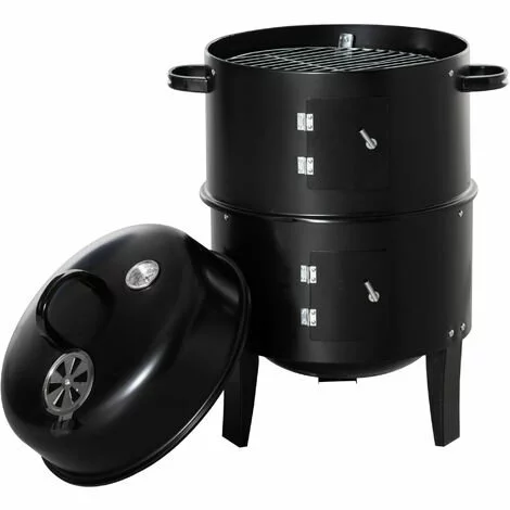 – Barbecue fumoir grill braséro 3 en 1 polyvalent et incontournable pour tous les adeptes de viande ou poisson grillé, mitonné ou fumé