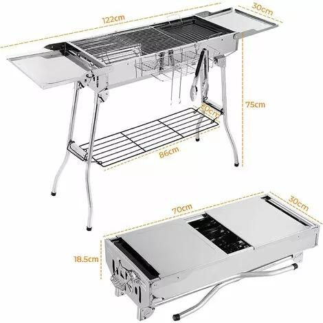 ★ Conception sûre et portable : la poignée anti-brûlure sur le dessus peut facilement ouvrir et déplacer le gril à charbon en acier inoxydable, ce qui vous protège efficacement des brûlures. Deux poignées de chaque côté pour un déplacement facile, conception de jambe pliante pour un transport et un stockage faciles. Profitez des avantages de griller n’importe où, n’importe quand.