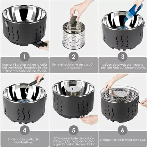 ★ 【PRÉCAUTIONS】 Taille du produit : 35 * 35 * 25cm, convient pour 3-4 personnes. Il est recommandé d’utiliser du charbon de bois respectueux de l’environnement et de contrôler la vitesse du ventilateur en fonction de la situation.