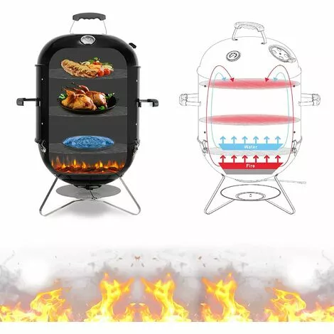 ★ 【Multifonction】Fumoir Smoker pour Barbecue au charbon de bois multifonctionnel 3 en 1, Fonction de grill, fumage, et cuisson afin de répondre à vos différents besoins. Le gril fumeur peut non seulement être utilisé comme fumoir avec deux grilles et un bol d’eau, mais également comme gril rond lorsque la partie centrale est retirée, notre produit peut répondre à vos différents besoins: en hiver, il peut également être utilisé comme un bol de feu pour réchauffer votre famille.