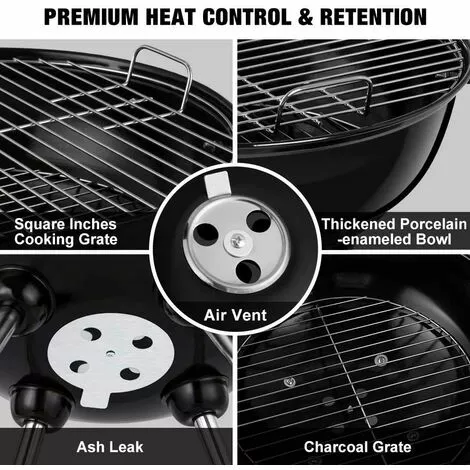 Grille de charbon de bois robuste, grille d’aération et arc en porcelaine émaillée épaissie pour un contrôle et une rétention de la chaleur optimaux.
