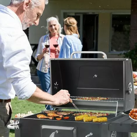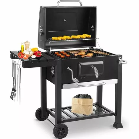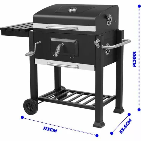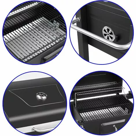 1:Plateau à charbon réglable en hauteur, évents réglables et thermomètre