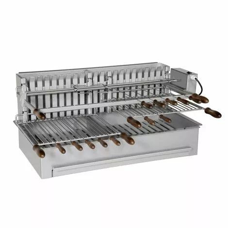 Le barbecue 800 tout inox 18/10 accompagné de son kit intégral est pensé pour un usage extérieur. Il s’intégrera aisément dans un ensemble brique/pierre/dur.Il fonctionne au charbon de bois et possède un tourne broche avec son support, moteur 15 kg – 220 V.- Foyer vertical- Grille + 12 brochettes- Tiroir des cendres- BacPrévu pour 4/14 personnes.Dimensions : L.86.5 x P.47 x H.39 cmPoids : 40 kgDisponible également en version standard