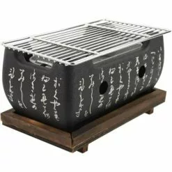 BARES Barbecue Au Charbon De Bois, Four Rectangulaire Cuisine Japonaise Cuisinière Au Charbon De Bois De Table Grill Barbecue Poêle à Alcool Barbecue Portable Avec Grillage Grillagé Et Base En Bois