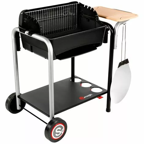 Nous proposons ce modèle de barbecue ROMA qui comporte un four à pizza ouvert intégré pour faire cuire vos pizzas en même temps que vos grillades estivales. Vous pourrez ainsi contenter vos 12 convives de tous âges lors de vos repas de l’été dans votre jardin ou sur votre terrasse et offrir de vrais moments de gourmandise et de convivialité. Ce barbecue en fonte a tout pour plaire aux cuisiniers du dimanche grâce à sa simplicité d’utilisation, d’entretien et à ses rangements pratiques. Le barbecue au charbon Somagic, de fabrication française, comporte un système de soufflerie intégré, un pare-vent, un vide-cendres, un plateau de rangement, un porte-bouteilles intégré, une planche à découper, une pelle à pizza et deux crochets porte-ustensiles. Ses deux roues le rendent facile à déplacer.