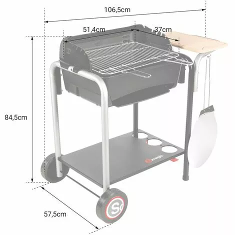 – Barbecue : L 106,5 × l 57,5 × H 84,5cm