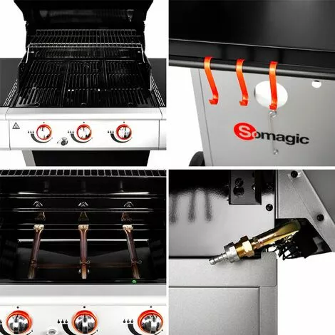 Le barbecue 3 brûleurs modèle MANHATTAN 300S favorise une cuisson optimale de vos aliments pour tous vos repas de l’été. Accueillez jusqu’à 15 convives autour de votre table et préparez simplement vos viandes, poissons et légumes à griller sur votre terrasse ou dans votre jardin. Ce barbecue au gaz est pratique avec ses 2 roues pour le déplacer facilement, ses crochets porte-accessoires et son tiroir coulissant qui récupère les graisses. Un capot et une grille d’attente permettent de maintenir les grillades au chaud avant de servir.
