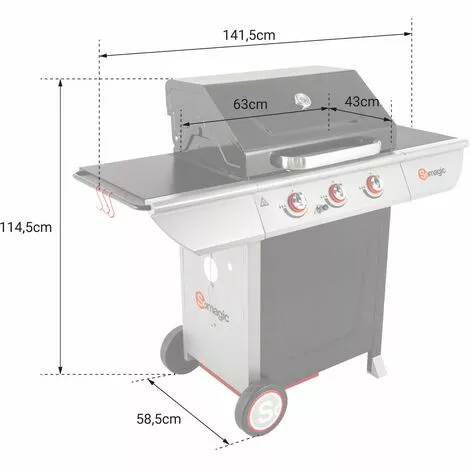– Barbecue : L 141,5 × l 58,5 × H 114,5cm
