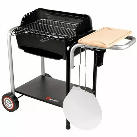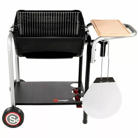 Pour griller confortablement, le barbecue Roma de Somagic est équipé d’un chariot, d’une planche à découper amovible, d’une plateforme de rangement et d’un panier porte-bouteilles. La pelle à pizza est également incluse.