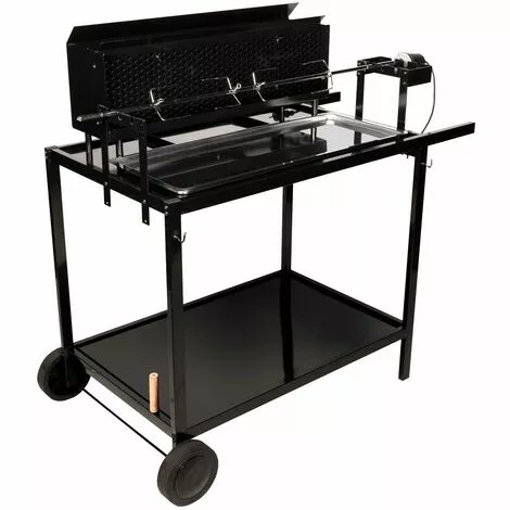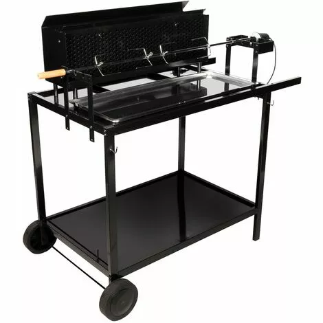 Dans votre jardin, préparez de belles pièces de viande grillées, cuites à la broche, grâce à la rôtissoire à bois et à charbon de bois de la marque Somagic. Le modèle PRO, à la fois design et élégant, pourra être déplacé facilement jusqu’à votre terrasse et à vos 15 invités grâce à son chariot. Maîtrisez parfaitement la cuisson de vos aliments en réglant la distance de la broche plus ou moins près du foyer vertical, protégé par un pare-vent. Le tournebroche est disponible avec la broche munie de 4 fourchettes, pour cuire même de grosses pièces. La rôtissoire à bois ou à charbon comporte un plat récupérateur de graisse ainsi qu’un système d’évacuation des cendres pour faciliter son nettoyage. Cette rôtissoire à moteur électrique fabriquée en France possède enfin un plateau de rangement bas.