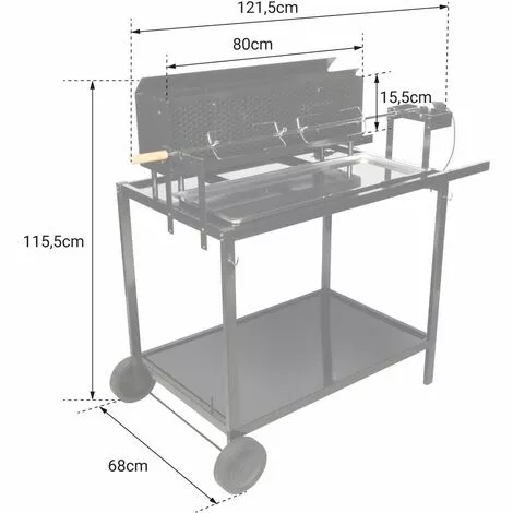– Rôtissoire : L 121,5 × l 68 × H 115,5cm