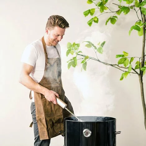 Transformez-vous en véritable chef cuistot avec ce tablier en cuir ! Si vous aimez cuisiner, vous avez besoin d’un bon tablier pour vous protéger des éclaboussures ! Ce tablier en cuir magnifique est un indispensable pour tous ceux qui aiment cuisiner. Il vous protégera à la fois des tâches de graisses d’une cuisson à la plancha et de la poussière du charbon. Les hautes températures provoquées par les flammes peuvent s’avérer dangereuses. Vous éviterez tous risques de brûlures et blessures grâce à cette barrière protectrice que vous procurera ce tablier en cuir épais. Caractéristiques : – Tour de cou réglable avec trois boutons-pression – Robuste – La couleur du tablier peut varier en raison de l’utilisation de différentes peaux. – Dimensions : L 0,5 x l 59,5 x H 104,5 cm – Matière : Cuir de buffle solide