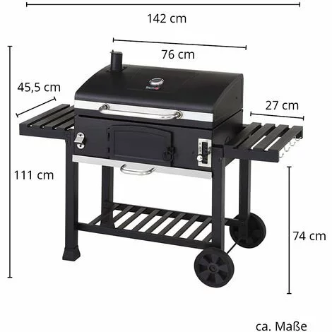 – Grand plaisir de griller sur une surface de cuisson de 42 x 72 cm – Dimensions totales : env. 142 x 46 x 111 cm (LxPxH) -.