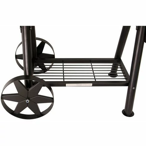 Grâce à sa solide poignée en acier et à ses larges roues, le fumoir peut être déplacé sans problème sur une pelouse.