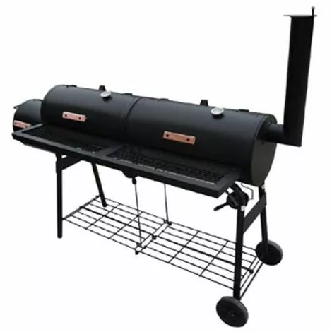 Ce barbecue à fumoir est une combinaison d’un barbecue traditionnel et d’un fumoir. Il vous permet de griller, de fumer, de rôtir et de garder vos plats au chaud. Dans le compartiment à feu, le bois qui couve produit de la chaleur et de la fumée qui est répartie uniformément dans le fumoir. Si vous vous en tenez à une seule façon de cuisiner, la boîte à feu séparée peut être utilisée pour maintenir la chaleur de votre nourriture déjà grillée. Le Nevada possède un compartiment à feu et deux chambres à fumoir. Viande, poisson, légumes, pizza et même du pain peuvent être préparés délicieusement dans le fumoir. Le goût de votre nourriture peut être influencé par votre choix de bois. Les plats peuvent être cuits à basse température, ce qui garantit que votre poisson et votre viande restent juteux et délicieux. Ce fumoir a deux compartiments de gril très spacieux. Une jauge de température vous permet de surveiller la température dans le fumoir. Une étagère supplémentaire pour ranger du bois supplémentaire se trouve en bas. Remarque : Nous vous recommandons d’utiliser un couvercle de barbecue (non inclus) pour le protéger contre les conditions météorologiques défavorables.