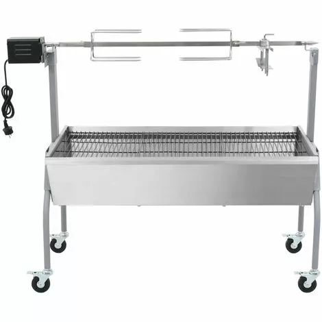 Notre rôtissoire de barbecue est idéal pour créer un festin en plein air pour votre famille et vos amis. Il fera grésiller votre expérience de cuisson en plein air, transformant efficacement votre cour arrière en une deuxième cuisine. Ce barbecue est très spacieux avec une grande grille et une rôtissoire automatique. Vous allez certainement rendre tous vos voisins jaloux lors de la cuisson du poulet, du poisson ou de l’agneau à la broche. La broche est alimentée par un moteur électrique pour assurer que votre viande soit bien cuite. La hauteur de la rôtissoire est réglable. Les quatre roues (avec freins) facilitent le transport et le déplacement. Rôtissez comme des professionnels dans votre propre cour arrière avec notre rôtissoire de barbecue !