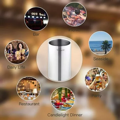 ★Taille et Contenue: 1.5L , dimension : 19 x 12 cm, idéal pour une bouteille. Notre seau à glace est convenable pour plusieurs occasions, parfait pour les barbecues, les fêtes, les bars, les clubs et les restaurants, etc. Gardez vos glaçons au frais avec l’aide du Seau à glace.