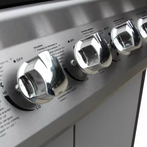 Couleur : noir et argentéMatériau : SPCC + Acier inoxydableDimensions globales : 133 x 58 x 108 cm (L x l x H)Zone de cuisson principale : 13,3 kW (36846 BTU = 6 principalesdans les zones de cuissonx 6141 BTU chacune)Côtédans les zones de cuisson: 2,5 kW (8500 BTU)Grille de cuisson : 63,5 x 37,5 cmHauteur de cuisson : 82 cmType de gaz approprié : GPL, butane, propaneAllumage électroniqueThermomètre intégré pour un affichage précis de la température de cuissonBac à graisse amovible, facile à nettoyerUne armoire spacieuse pour ranger les accessoiresRoulettes robustes pour la mobilitéComprend une housse de barbecue pour protéger le gril contre la pluie et la poussièreMise en garde : NE JAMAIS placer les bouteilles à gaz dans l’armoire de stockage ou sous le barbecueCe barbecue à gaz est dotée de 6 grandes dans les zones de cuissonet 1 zone de cuisson latérale dans les zones de cuisson et est idéal pour créer une fête en plein air pour votre famille et vos amis. Il vous donnera une expérience de cuisson en plein air magnifique et transformera efficacement votre cour arrière en une seconde cuisine !Le gril à gaz dispose d’un design élégant et fonctionnel. Il a une grande surface de cuisson et une hotte robuste avec un thermomètre intégré qui affiche avec précision la température de cuisson. Une table d’appoint offre un espace de travail supplémentaire pour faire des sauces ou vos plats favoris. Un récipient d’égouttage à graisse amovible est également inclus et est facile à nettoyer.Fabriqué en matériaux résistants, le gril est très durable. L’armoire dessous fournit un grand espace pour ranger les accessoires de cuisine et les ustensiles. Grâce aux 2 roulettes robustes, le gril est facile à déplacer. La livraison comprend également une housse de barbecue pour protéger le gril contre la pluie et la poussière.Pour connecter le barbecue à la bouteille à gaz, un tuyau de gaz et un régulateur de pression approprié sont requis, mais ils ne sont pas inclus dans la livraison.